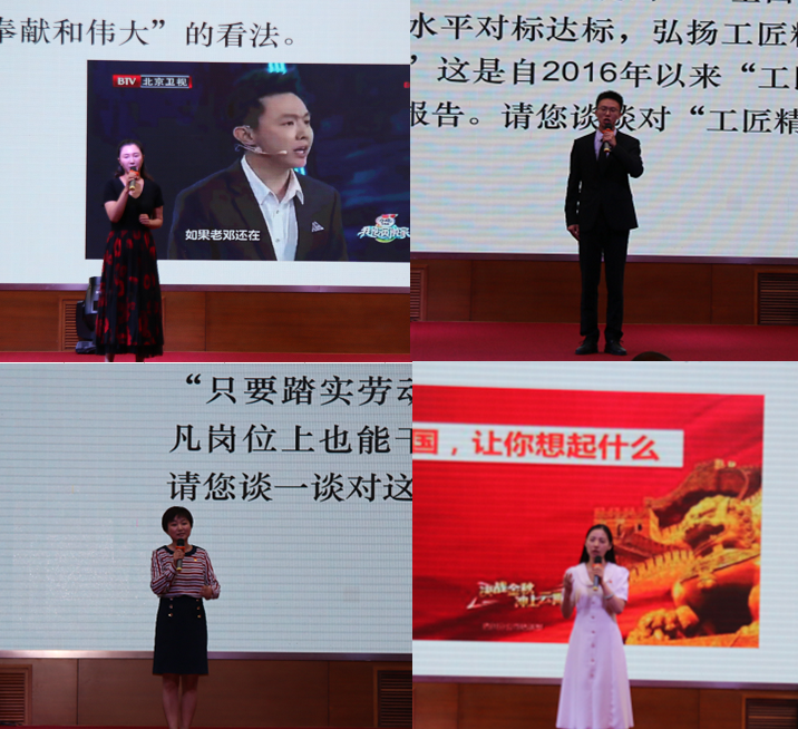 此次參賽決賽的12名選手,顯然都是歷經(jīng)初賽、預(yù)賽層層勝出實(shí)力不凡的。他們臨場(chǎng)發(fā)揮有條不紊,或旁征博引、或結(jié)合實(shí)際,指出了素材折射的現(xiàn)象和其背后的本質(zhì),道出了自己的思考和感悟。尚德集團(tuán)副總經(jīng)理何娜以“奉獻(xiàn)和偉大”為素材,緊扣“我和我的祖國(guó)”為主題,結(jié)合尚德集團(tuán)的發(fā)展歷程講述了默默堅(jiān)守在自己崗位上追夢(mèng)、筑夢(mèng),奮斗報(bào)國(guó)的普通百姓的愛國(guó)立場(chǎng)。3分鐘即興演講結(jié)束后,臺(tái)下掌聲雷動(dòng)。